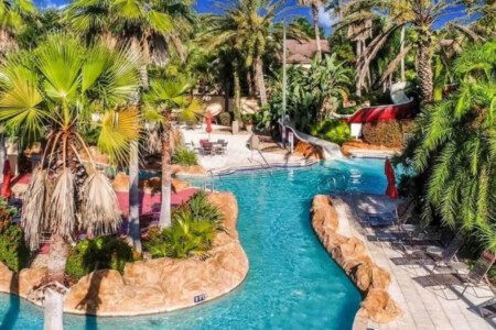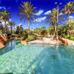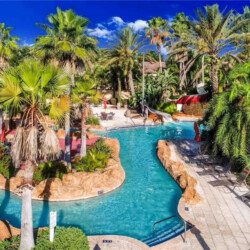 Regal Palms Resort enhances your stay with its tropical pool, lazy river, fitness center, arcade, spa, and on-site dining—perfect for both fun-filled days and tranquil evenings.
