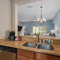 Villa Serenity is designed with relaxation in mind, offering a peaceful retreat for families and groups. With two king suites and two queen bedrooms, everyone has their own comfortable space. The open living area and fully equipped kitchen make gathering easy, while the private patio provides a quiet spot to unwind after a day of adventure.